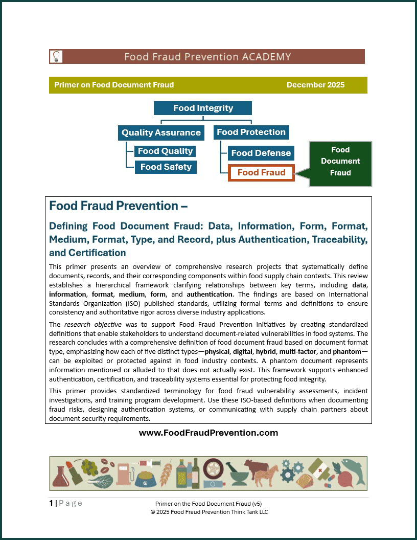 Primer: Food Fraud Vulnerability Assessment (FFVA)